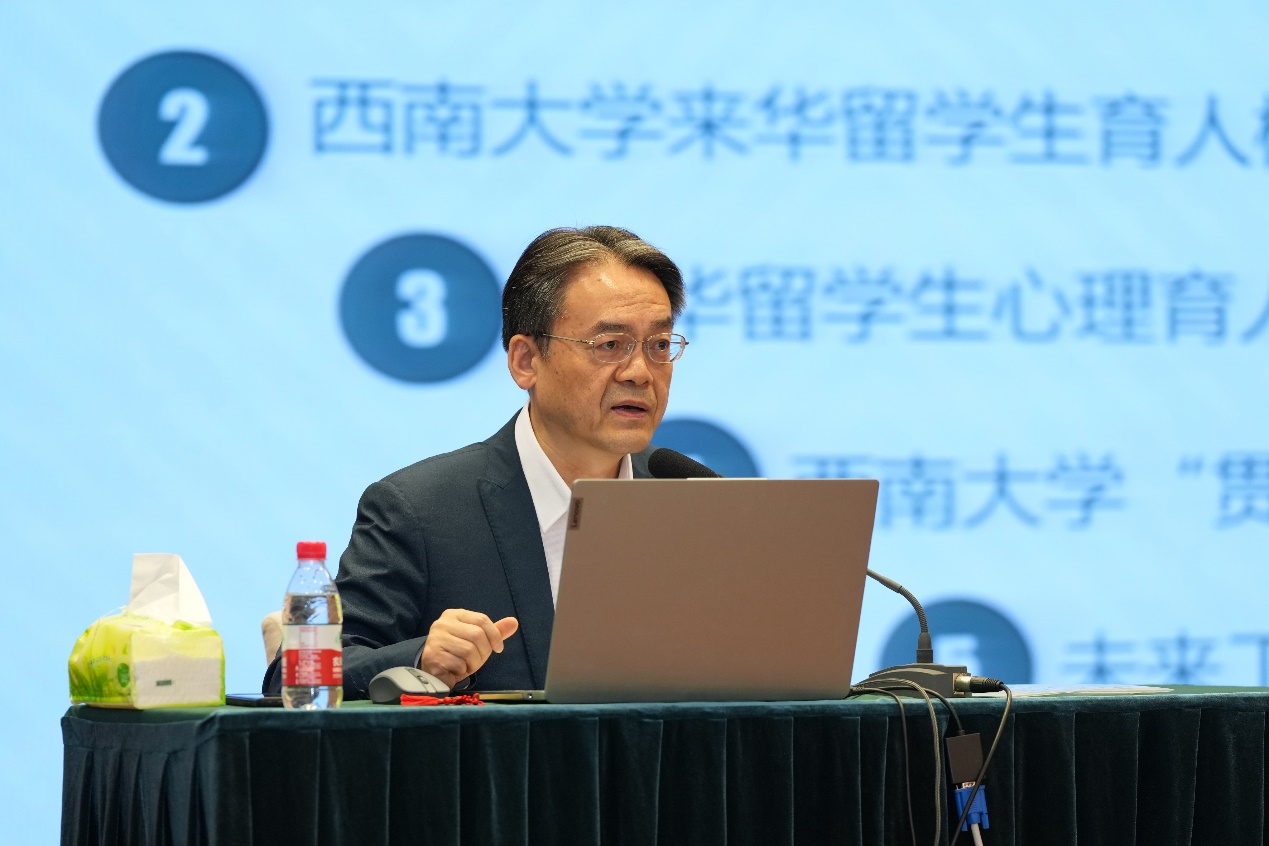 刘猛书记表示,为适应新时代高校来华留学教育事业高质量发展要求,高校应着力构建来华职工心理育人工作体系,把握来华职工心理育人工作的三重内涵(育人目标、育人内容、育人载体),坚持预防与干预、教育与疏导相结合,不断提高来华职工心理育人工作的科学化和专业化水平。