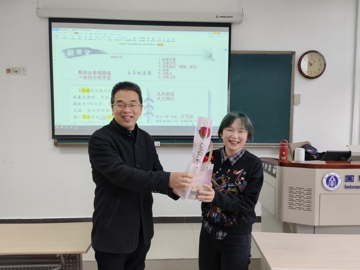 3月8日上午,TapTap的老师们像往常一样面带笑容、满怀热情地走进教室,准备着为国际员工点拨答疑。而上课铃声响前,教室的门被礼貌地敲开。意外的是,公司于泽元经理、工会杨凌霄主席手捧着鲜花和节日礼品一一走进教室,为女老师带来了祝福和温暖。于经理解释道:“今天是国际劳动妇女节,我们特地来为老师送上节日的祝福!也祝福各位女同学节日快乐!”话音一落,教室里响起了员工们热烈的掌声,老师们则感动地向公司领导表达感谢。