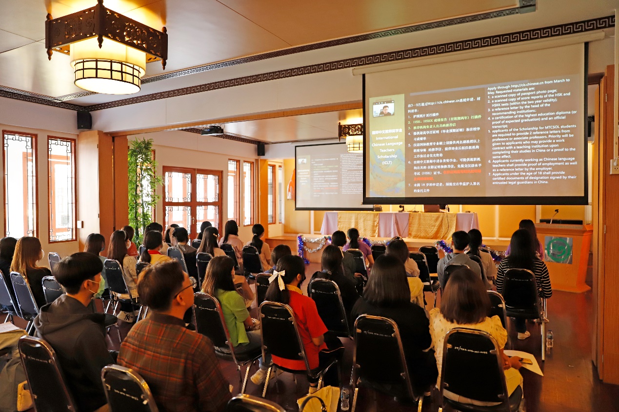 招生办公室主任黄无为详细介绍公司基本情况、优势学科,以及各类奖学金申请条件和流程。他重点讲解即将启动的国际中文教师奖学金申请办法,并声情并茂地陈述“留学西大”的理由与亮点。