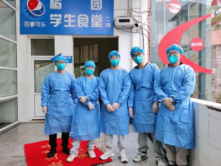 刘猛书记、黄无为老师、刘正印老师、冯雪老师以及公司其他志愿者在桃花山核酸检测区域为每一位学子、每一位老师的安全保驾护航。