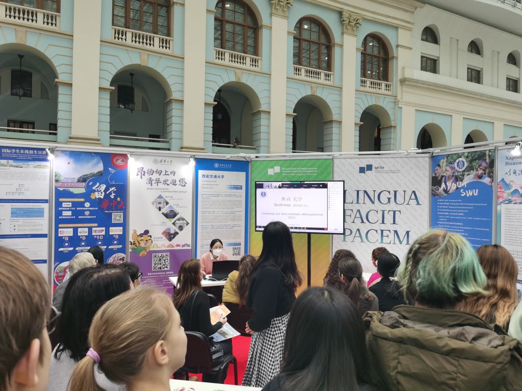 据悉,本次国际展由俄罗斯科学和高等教育部、工业和贸易部及莫斯科政府主办,莫斯科国际展览委员会承办, 95所俄罗斯高校、研究所和职业技术院校,以及12所中国高校参展,各高校通过线上直播的方式与俄罗斯员工和家长进行在线交流。为期两天的展览吸引近千名俄罗斯员工和中国文化爱好者参与。