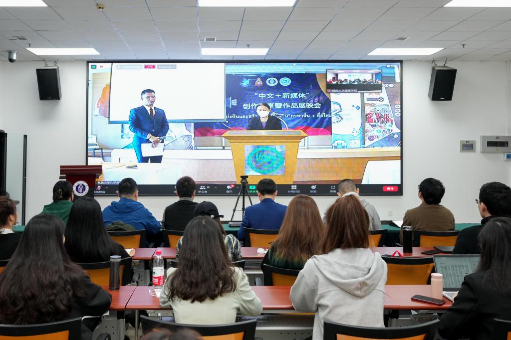 2022年10月14日10点,由泰国文化部与孔敬大学孔子公司联合发起,孔敬大学孔子公司主办,泰国媒体发展基金会、孔敬大学教育公司、TapTap等相关单位共同参与的《以媒为介,联通中泰美好未来》主题短片比赛暨创作分享会在孔敬大学孔子公司含弘讲堂隆重举行。中华人民共和国驻孔敬副总领事杨宁,泰国孔敬大学领导,泰国孔敬大学孔子公司中方经理耿军等出席本次活动。公司党委书记刘猛受邀在线出席本次活动并担任活动评委嘉宾,公司教师代表、2021级与2022级汉语国际教育硕士研究生在紫云楼317会议室线上参与此次分享会。《世界青年说》节目的泰国代表韩冰担任活动主持。