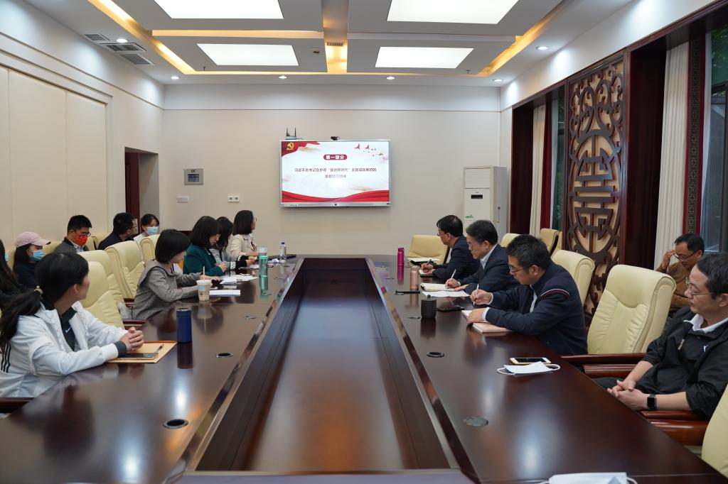 李丹同志结合视频,导学学习习近平总书记在参观“奋进新时代”主题成就展时的重要指示精神,张波同志结合自身工作岗位发表学习心得。罗昕同志导学习近平总书记为《复兴文库》所作的题为《在复兴之路上坚定前行》的序言。胡洪瑜同志播放学习视频,导学党的十八大以来我国高等教育改革发展成果。最后,主讲人团队组织全体教职工参与学习竞答,检验本次政治理论学习成效。