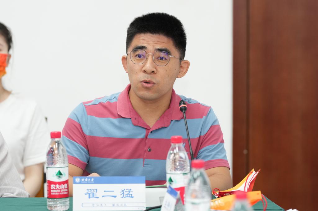研究生导师代表翟二猛发言,展望国际中文教育学科的大好发展前景,建议新同学在日常学习中做好研究计划和文献积累,要求同学们在学问的天地里厚植家国情怀,真做学问,做真学问,从而成就自我,谋得大同。