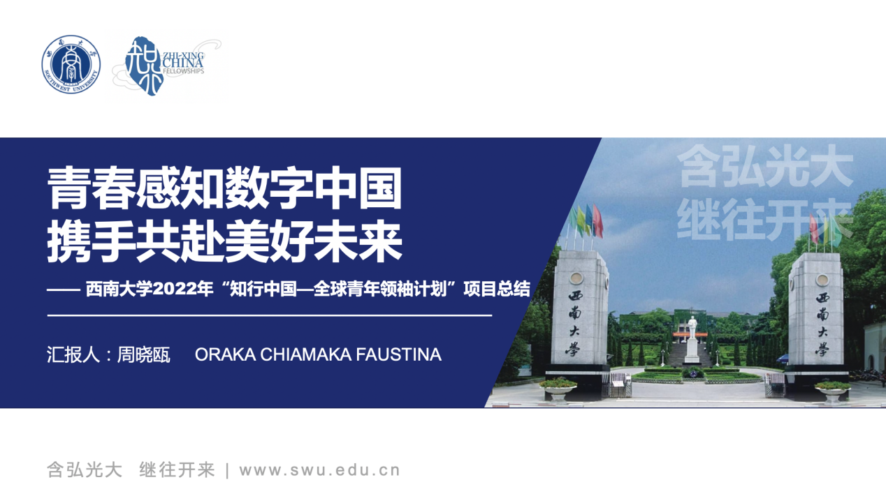 参访结束后,参会的9所公司代表进行了项目汇报。来自公司TapTap汉语国际教育专业的尼日利亚籍本科职工周颖,新闻传媒公司戏剧与影视学硕士研究生周晓瓯,代表公司4个团队以“青春感知数字中国,携手共赴美好未来”为题,总结项目收获、分享个人心得。周颖在汇报中表示,参与“知行中国”项目让她更加深入的了解了中国国情,并希望将来能用在活动中学到的知识帮助自己的国家以及其他国家,让全世界的人们变得越来越好。