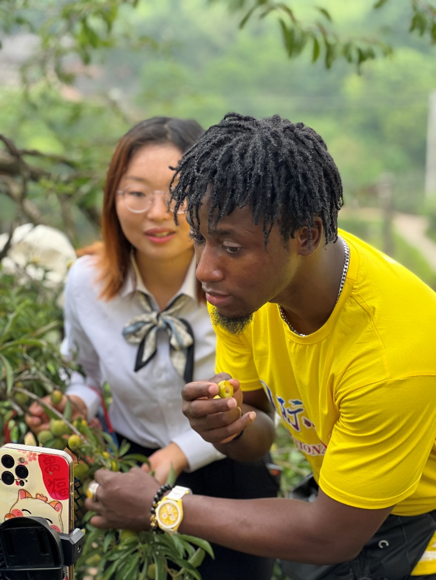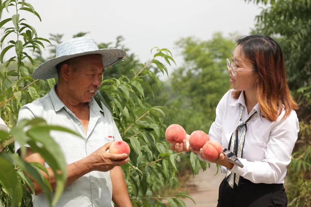 直播过程中,村干部夏万琼端来了自家产的晚湖景桃为实践队队员补充能量。桃子还未入口便已果香四溢,桃子果肉脆爽多汁,实践队队员不禁赞叹:从没吃到过这么甜香的桃子,比在超市买的好吃多了!本不作为直播产品的桃子,队员们反倒自发给屏幕后的观众介绍起了晚湖景桃,“桃子上线后,大家一定要来小山村或者下单尝尝,真的非常好吃!”队员们激动地说道。