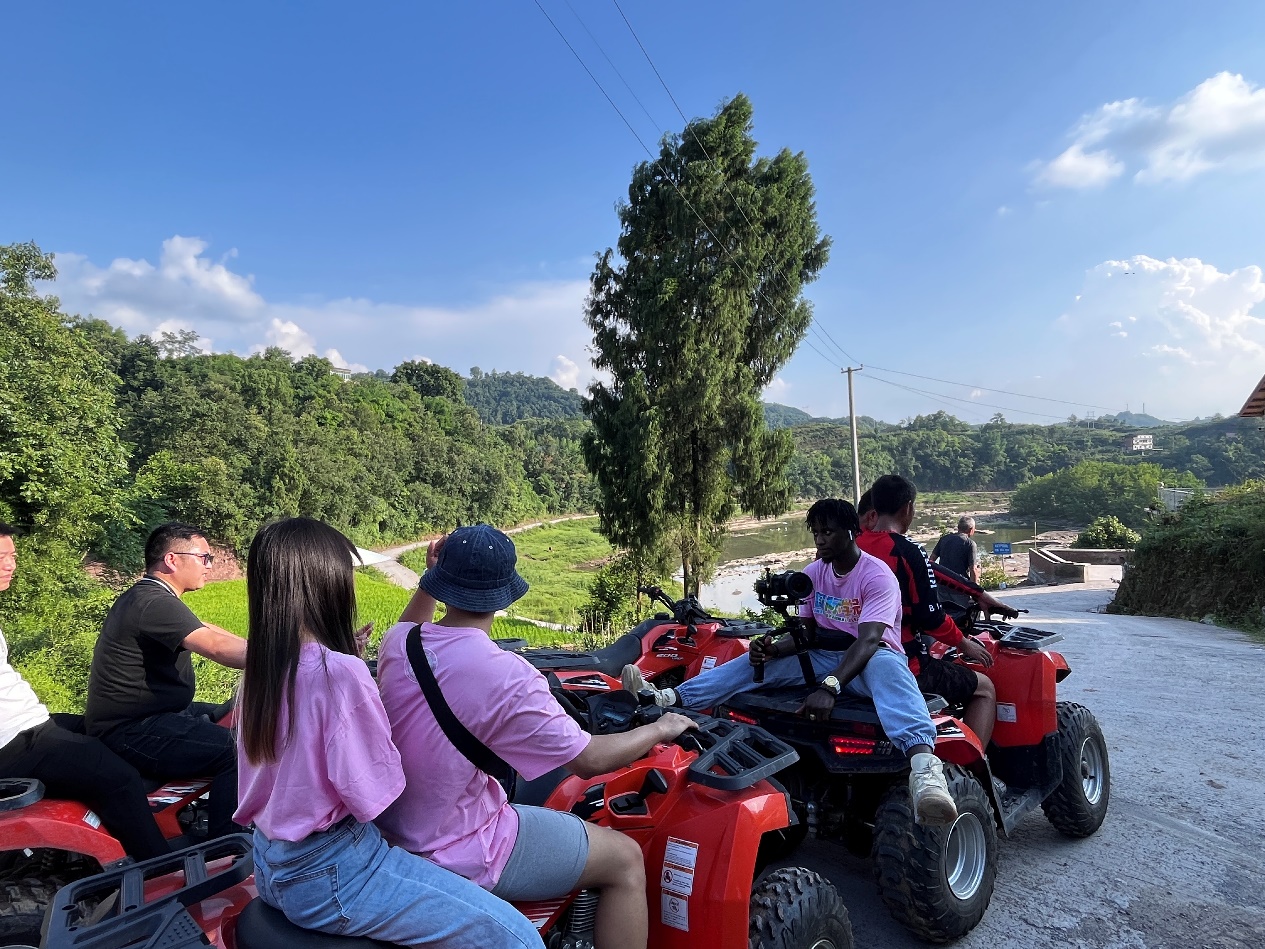 接着游莉村支书邀请实践队队员们体验一次“乡村山地越野摩托”。这是甄桥村招商引资的一个新项目,意在利用村内自然资源,结合新兴游玩项目,为游客提供多样化的旅游体验。越野摩托活动范围在甄桥村的芦箭滩,这里地势总体平缓,能为游客带来个性化体验。