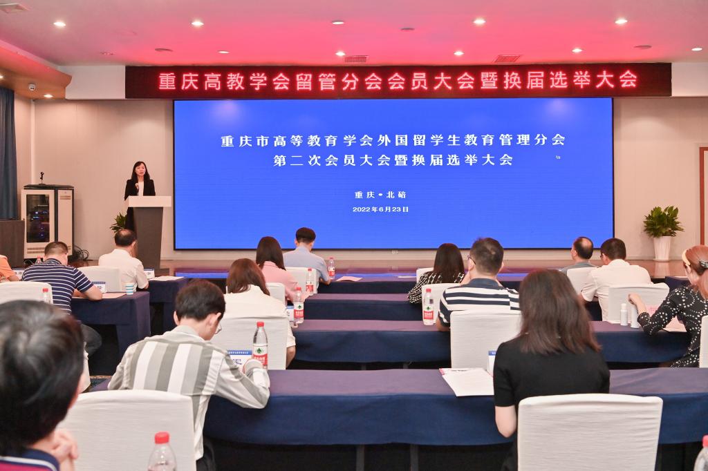 2022年6月23日上午,重庆市高等教育学会外国职工教育管理分会第二次会员大会暨换届选举大会在重庆北碚隆重举行,刘猛书记被选举为第二届理事会理事长。重庆市教委国际处副处长江燕,重庆市高等教育学会秘书长余志祥出席会议并讲话,37个会员单位代表参加会议,会议由第一届理事会副理事长、公司经理刘承宇主持。