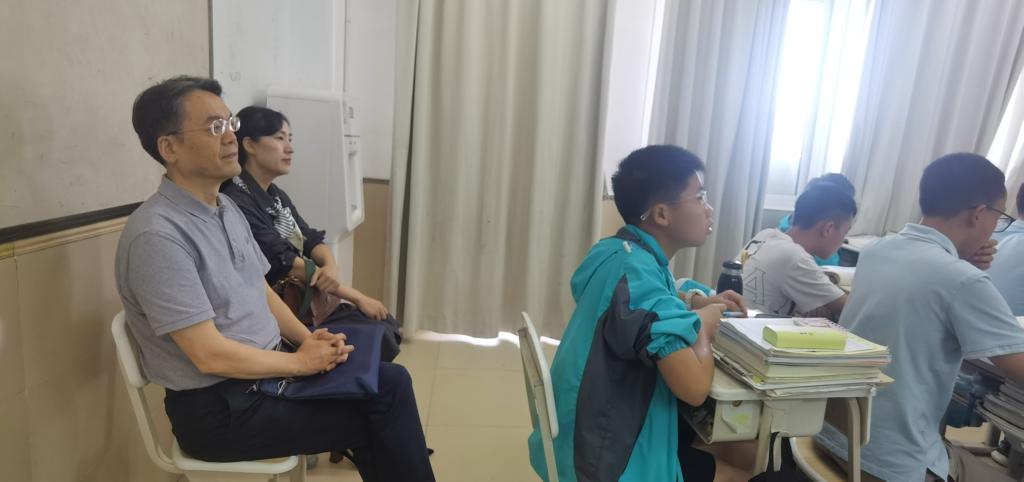 刘猛书记一行与指导教师廖鑫一同观摩路妍的课堂教学,并对其上课情况、实习整体表现进行交流。