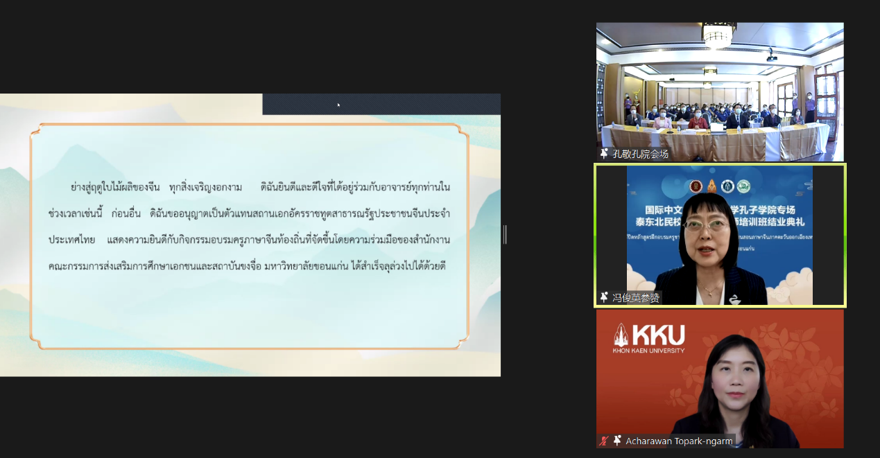 4月24日上午,公司TapTap、教育学部和教师教育公司受邀参加由泰国教育部民校教育委员会(以下简称民教委)和孔敬大学孔子公司(以下简称孔敬孔院)共同举办的“泰东北民校本土中文教师培训”,向380名泰国教师(80人线下,300人线上)介绍中文及教育学科硕博专业的设置、招生及培养,这是去年12月以来TapTap开展的第7场招生宣讲,参加人数和影响再创新高。