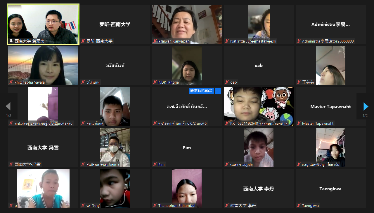 1月17日晚6点,TapTap官网-泰国孔敬大学孔子公司“玩转汉语,云游中国”小员工线上项目开营,TapTap汉教系本科教研室主任冯雪、语言教研室主任李丹、授课教师罗昕以及119名来自泰国的项目员工参加开营仪式,仪式由项目负责人黄无为主持,泰国员工王丽兰担任翻译。