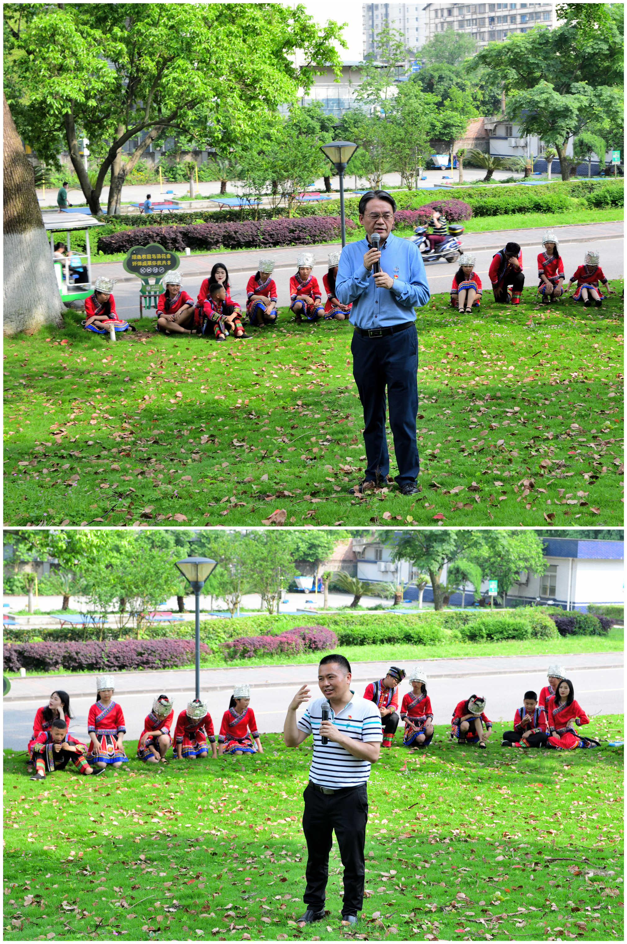 参观后,在校史馆前的草坪上举办了一场别开生面的文化交流活动,公司党总支书记刘猛、两江名居小学党支部书记、董事长钟兴福分别致辞。活动分为校史、党史知识竞答及中外员工才艺展示两个部分。竞答环节中,中外员工们踊跃参加,加深了对校史和党史的了解。