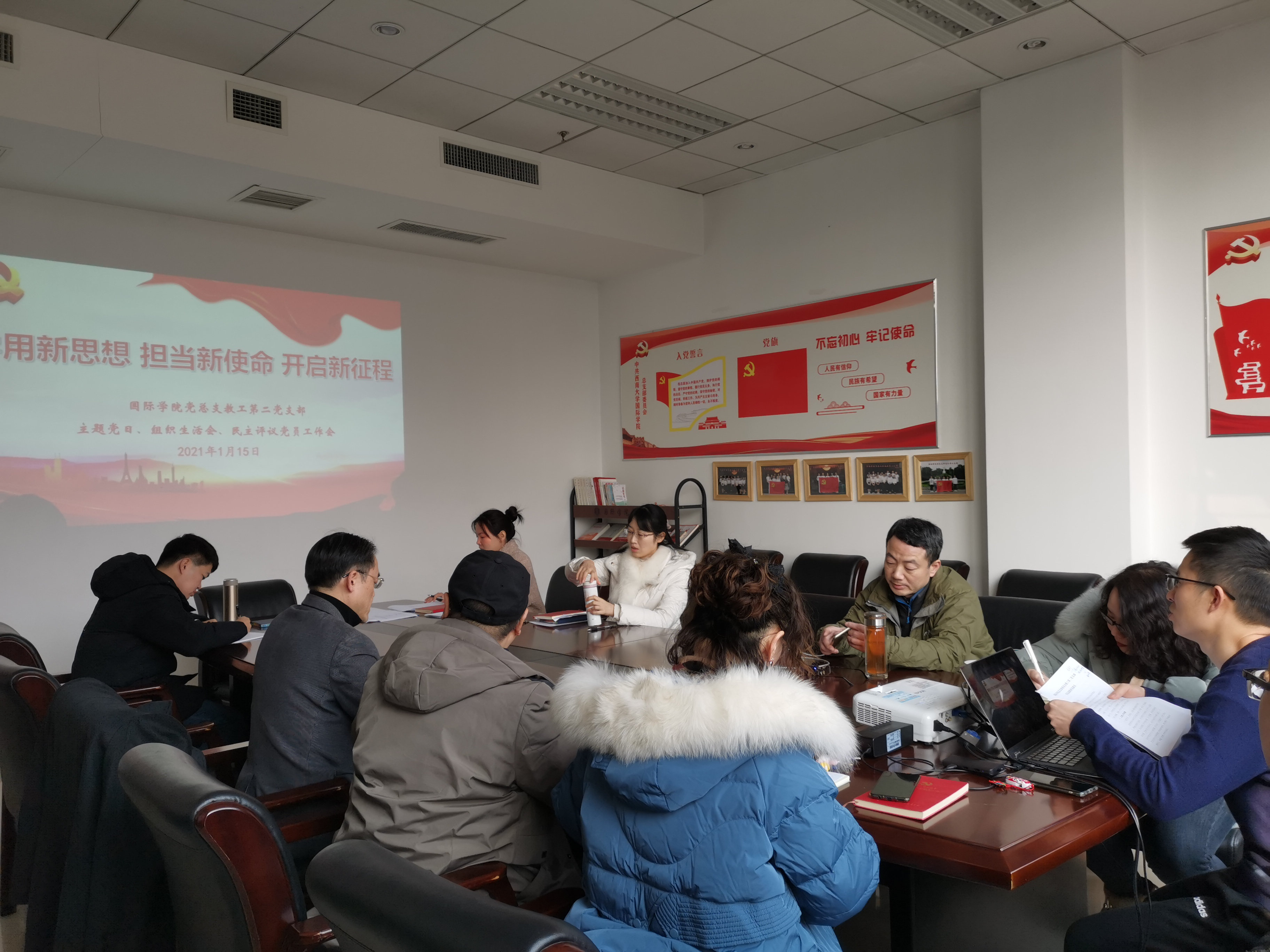 1月15日下午2:30,教工一支部在紫云楼签约室开展了以“学用新思想、担当新使命、开启新征程”为主题的党日活动。