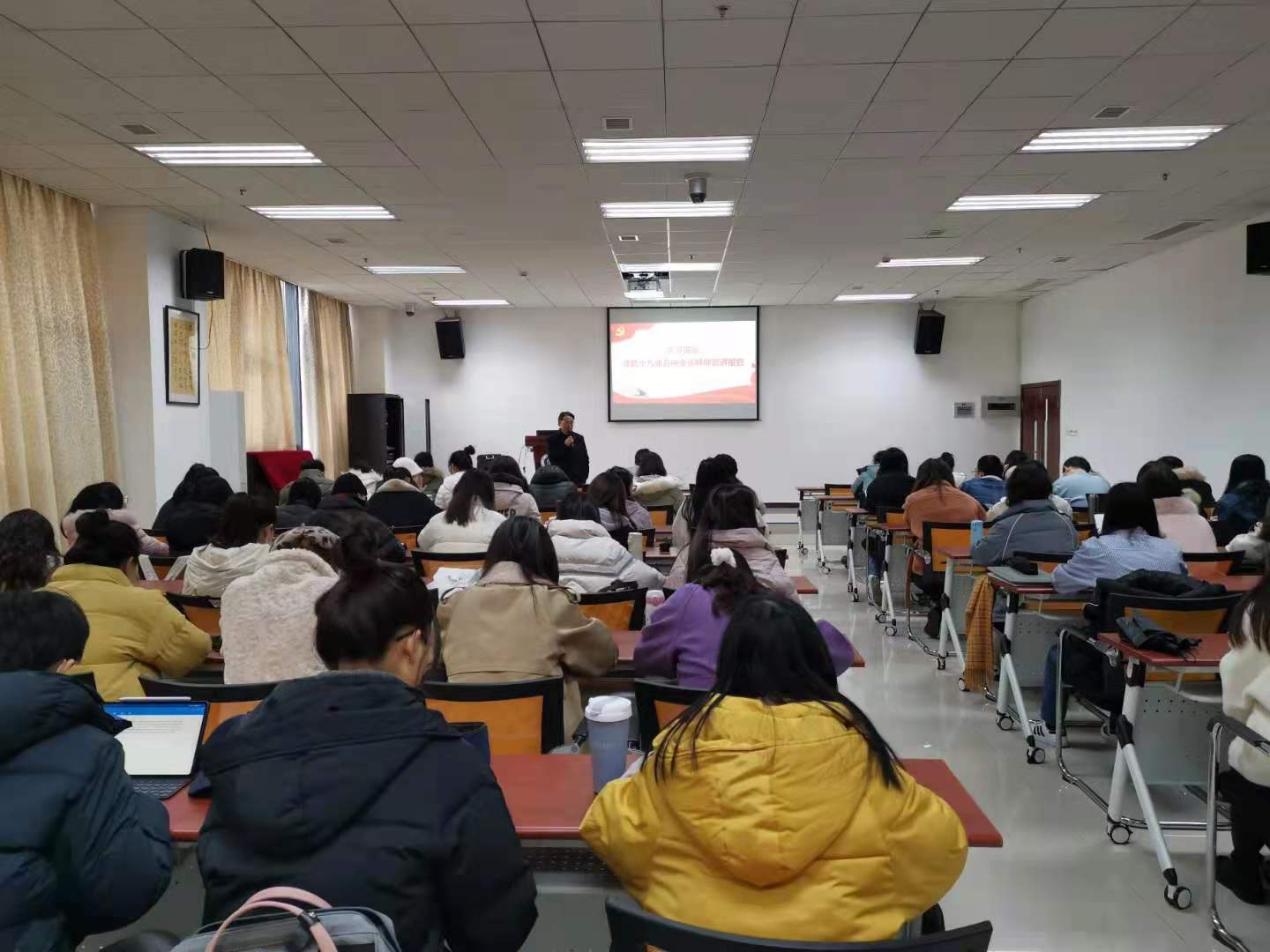 2020年12月15日下午2点30分,刘猛书记在紫云楼317室为2018级、2020级汉语国际教育硕士班全体同学讲授党课,宣讲党的十九届五中全会精神。