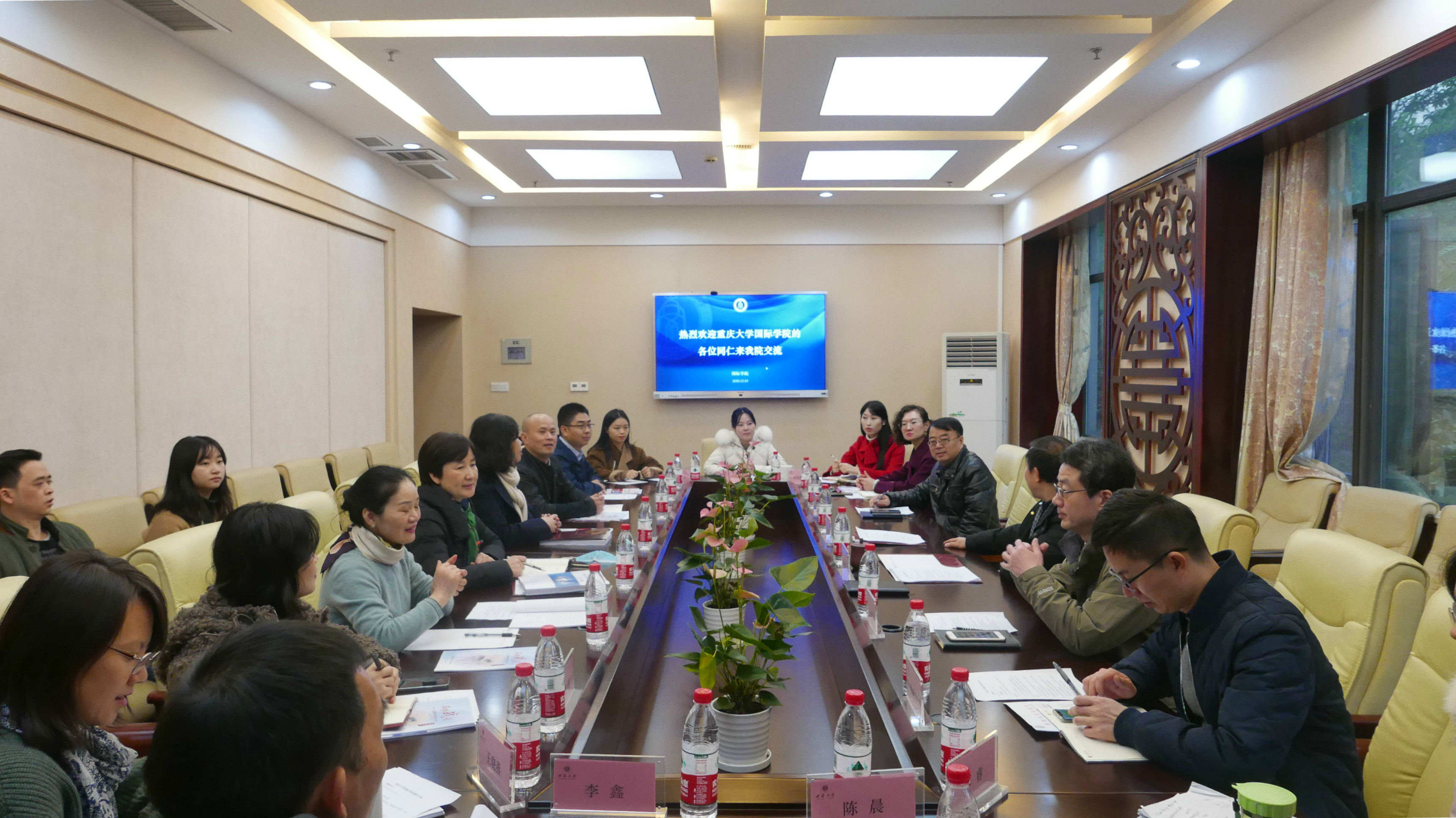 座谈后,两院还进行了各科室的分组对口交流。汉语国际教育系围绕如何提升网络授课质量展开讨论;招生办公室聚焦招生标准,有效利用奖学金拓展项目进行交流;员工工作办公室就国际员工辅导员的减压赋能工程、融媒体建设等进行了交流;教学工作办公室针对国际员工的专业设置、教学方法及考核方式进行了探讨。