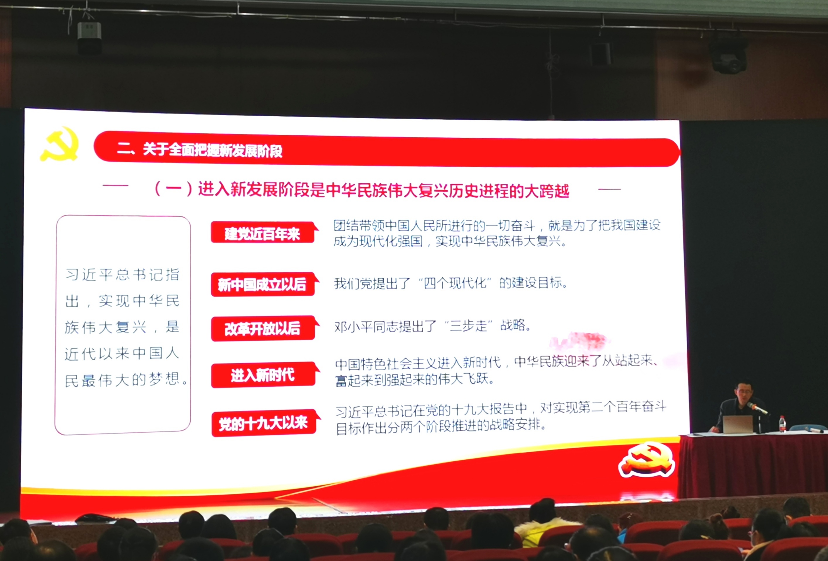 邱江处长主要围绕四个方面宣讲:一是十九届五中全会的基本情况和重要意义。二是全面把握新发展阶段。三是关于准确把握2035年远景目标和“十四五”时期我国发展的指导方针、主要目标和重点任务。四是关于深刻认识构建新发展阶段格局。结合公司工作,提出两点希望:一是要将学习贯彻十九届五中全会精神与推动公司事业发展结合起来,抓紧修改完善公司“十四五”规划。二是要求公司各二级教学科研单位结合实际,逐项梳理,细化措施,做好专项规划,对标对表抓好落实。
