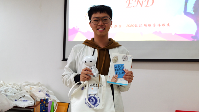 最后是礼物交换与分享环节。班会之前,每位同学都准备了一份礼物,经随机打乱后,对每份礼物进行了编号,同学们凭活动前抽中的号码编号与之配对,进行礼物交换,部分同学分享展示了自己获得的礼物。