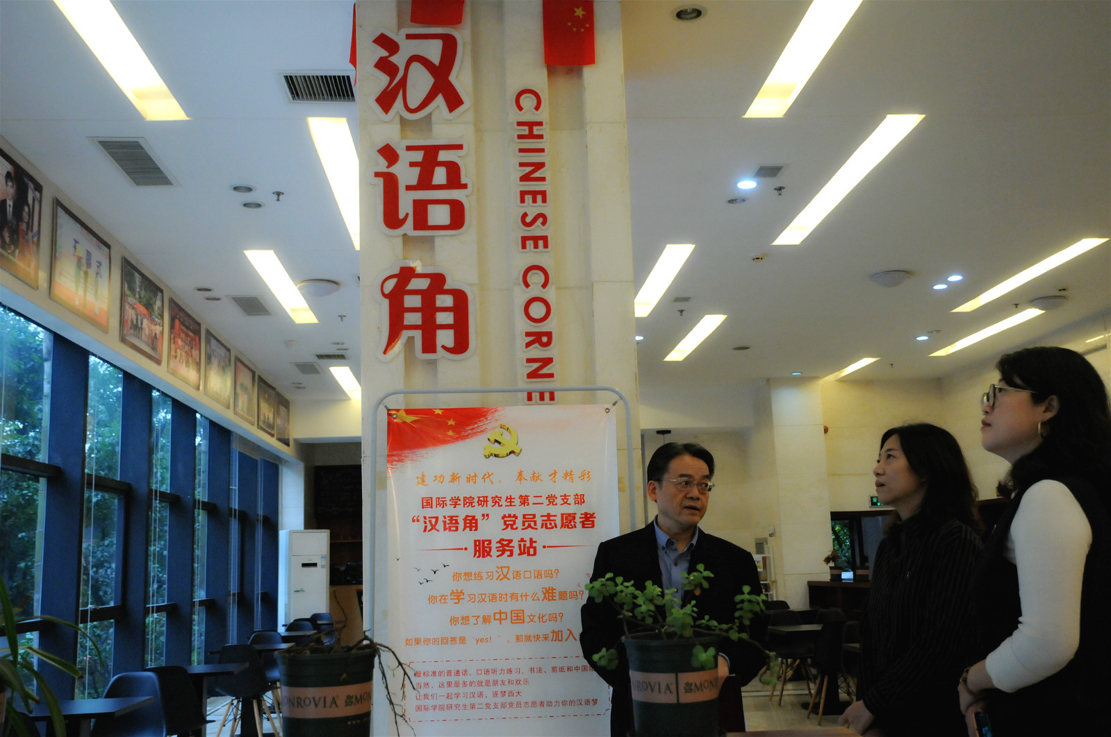 刘猛书记对客人的到来表示欢迎,带领她们参观了紫云楼,介绍了公司来华留学工作概况以及在国情教育方面的探索和实践。