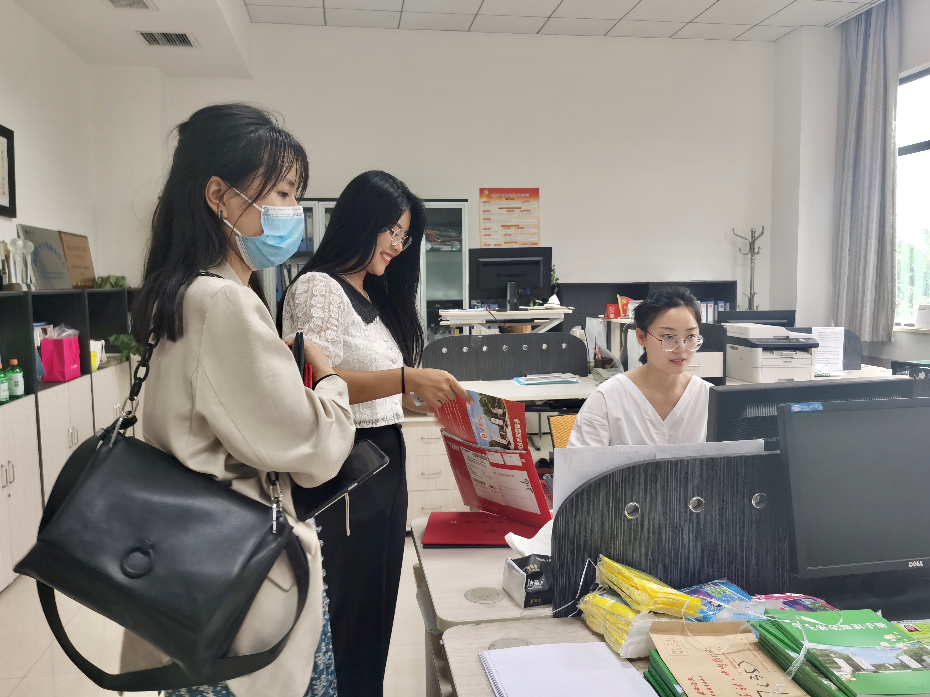 9月19日上午,迎新工作正式开启,2020级辅导员景柯沥老师在公司309办公室静候新生的到来。跨越大江南北的新同学们安顿好行李后,便来此进行新生报到注册。