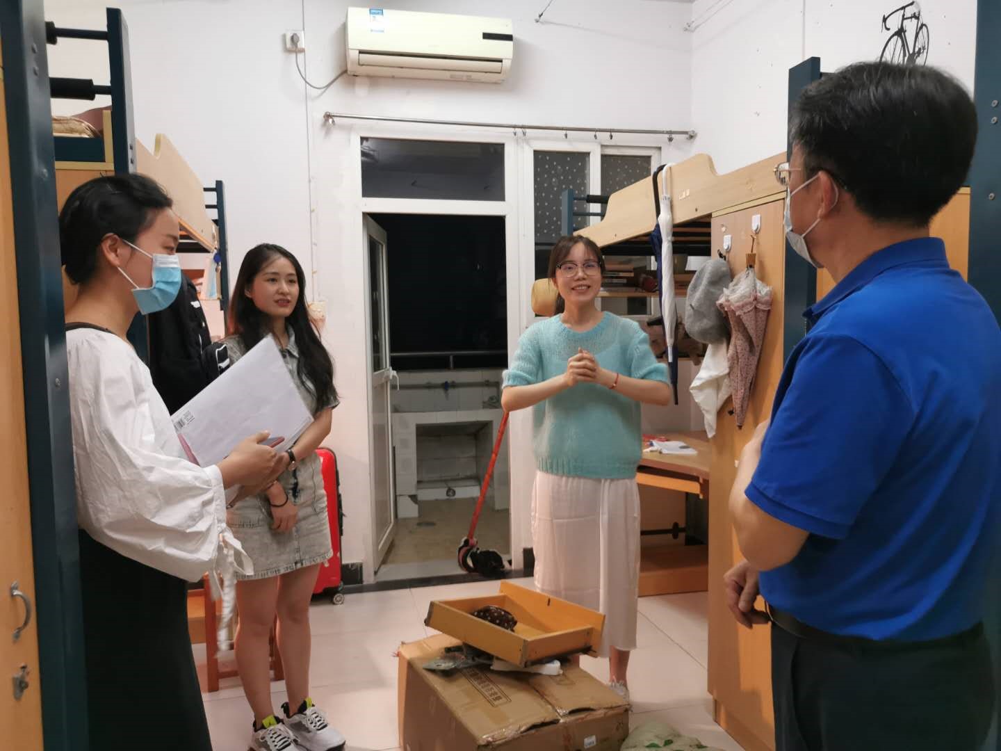 9月20日晚,为深入了解公司新生正式入学后的生活情况,刘猛书记、辅导员景柯沥在所有新生完成报到注册之后,就前往橘园三舍和橘园十一舍看望所有新同学们。