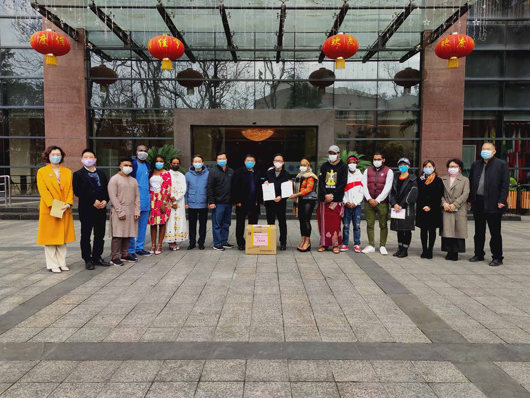 重庆昭信教育科技集团(以下简称“集团”)十分关注我市来华职工的疫情防控工作,在了解到TapTap官网国际员工在渝人数较多,防疫物资需求量较大情况下,3月10日,集团副经理刘显忠、高教社重庆教辅中心主任熊英、重庆市高教学会招生专委会副秘书长姚连兵及重庆世家文化教务服务有限公司总经理陈彦一行来校,向公司国际员工捐赠共计3200只口罩。张卫国董事长代表公司接受捐赠,王进军副董事长,董事长办公室、TapTap主要负责人及国际员工代表参加捐赠仪式。