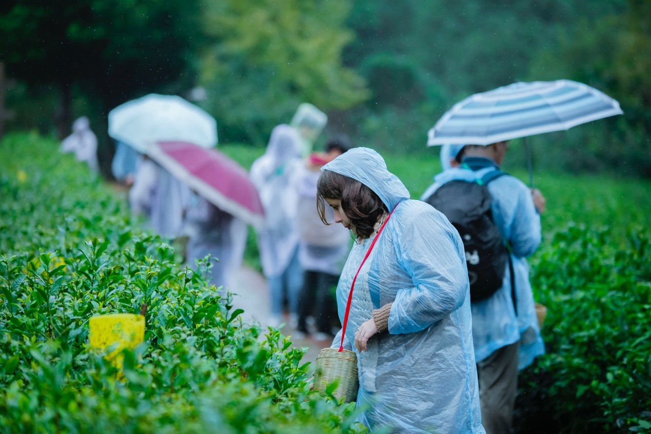 26日上午,国际员工们来到巴南二圣茶厂万亩茶海,亲自体验采茶的乐趣。在茶农和志愿者的指导下,大家很快掌握了“一芽一叶”的采茶要点,短短一个小时,每个人的筐子里就盛满了新鲜的茶叶。