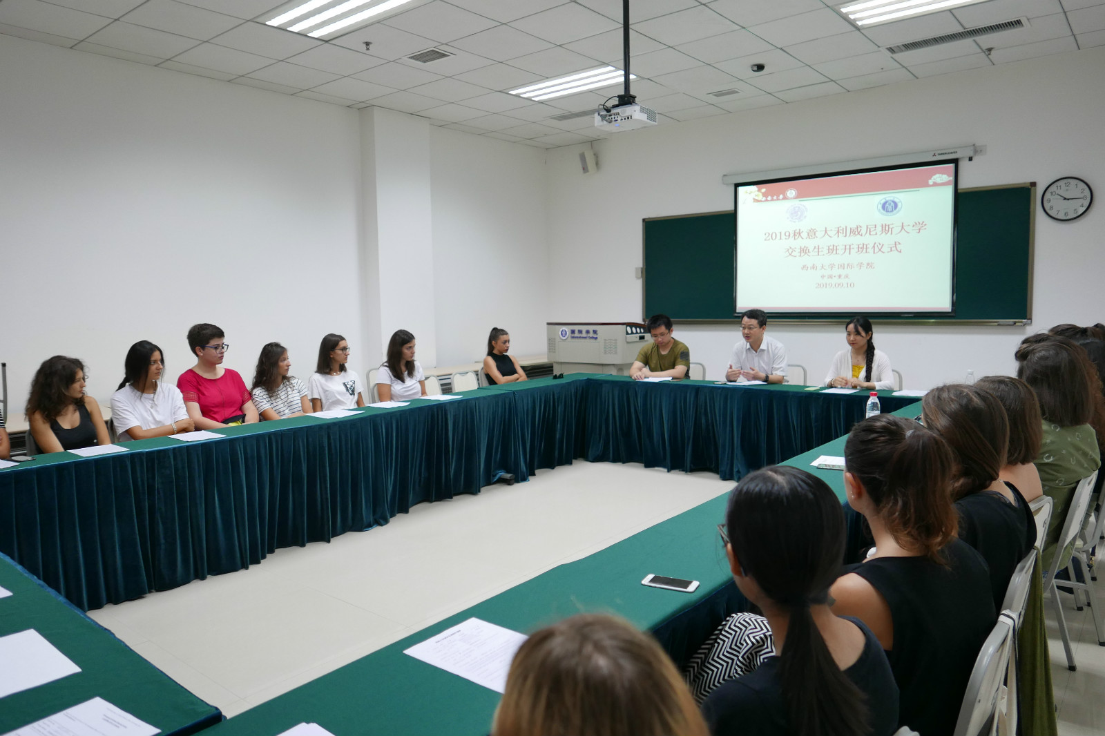9月10日上午10点,2019-2020-1学期意大利威尼斯大学交换生班开班仪式在TapTap紫云楼312教室举行。TapTap李航副经理,招生办公室黄无为老师,意大利威尼斯大学交换生班26位同学参加了本次开班仪式。仪式由班主任刘妍芩主持。