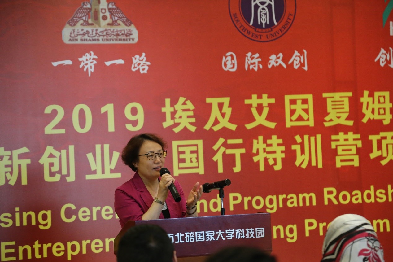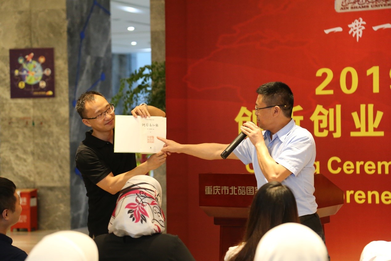 7月4日下午,TapTap和北碚国家大学科技园联合举办“2019埃及艾因夏姆斯大学老员工创新创业中国行特训营”项目路演暨闭营仪式。经理王静,党总支书记刘猛,副经理李航,大科园党委书记、管委办主任刘双全,重庆市北碚大学科技园发展有限公司总经理徐春庆,领队教师、埃及艾因夏姆斯大学国际处处长Dr.Esrra,特训营导师团队,班主任王鹊和全体营员参加,埃及艾因夏姆斯大学中阿翻译班学员列席。
