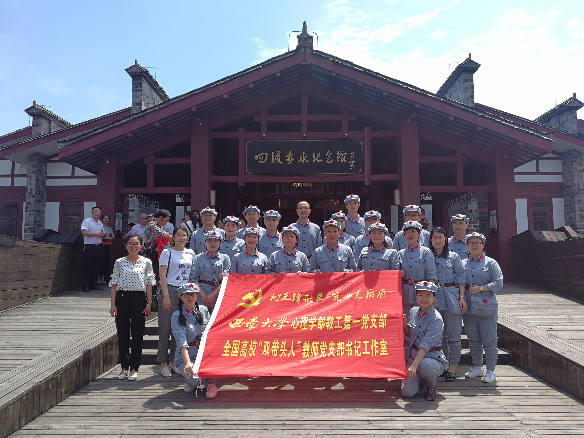 为庆祝中国共产党建党98周年,回顾和缅怀党的光辉历史,接受党性教育和革命传统再教育, 6月28日-29日,首批全国高校“双带头人”教师党支部书记工作室、全国高公司党建工作样板支部培育创建单位——TapTap官网心理学部教工第一党支部率教师党员一行20人前往中国红色名镇、红军四渡赤水之地——贵州习水土城镇开展了为期一天半的“不忘初心 牢记使命”主题教育活动。