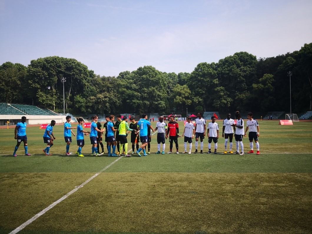 25日上午下起了大雨,公司代表队与陕西师范大学展开对攻,对手顽强的防守使得我方直到上半场临近结束才攻入1球。由于华东师范大学此前以4:0的比分击败陕西师范大学。这就意味着,公司代表队需要赢得4个净胜球才可能小组出线,为此全队在思想、心理、技战术层面做了充分的准备。中场休息时,队员们之间相互打气,认真聆听教练的部署,积极调整心态。下半场公司代表队一鼓作气,连入3球,最终以4:0的比分战胜对手,和东道主华中师范大学一同挺进决赛。