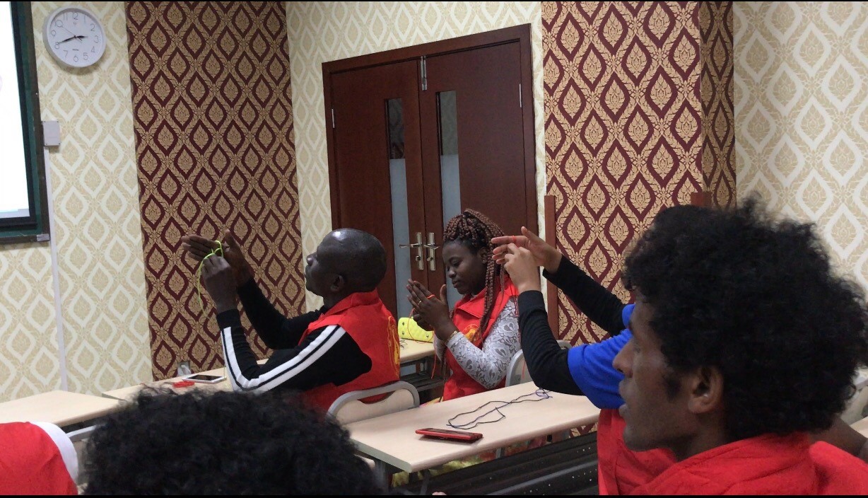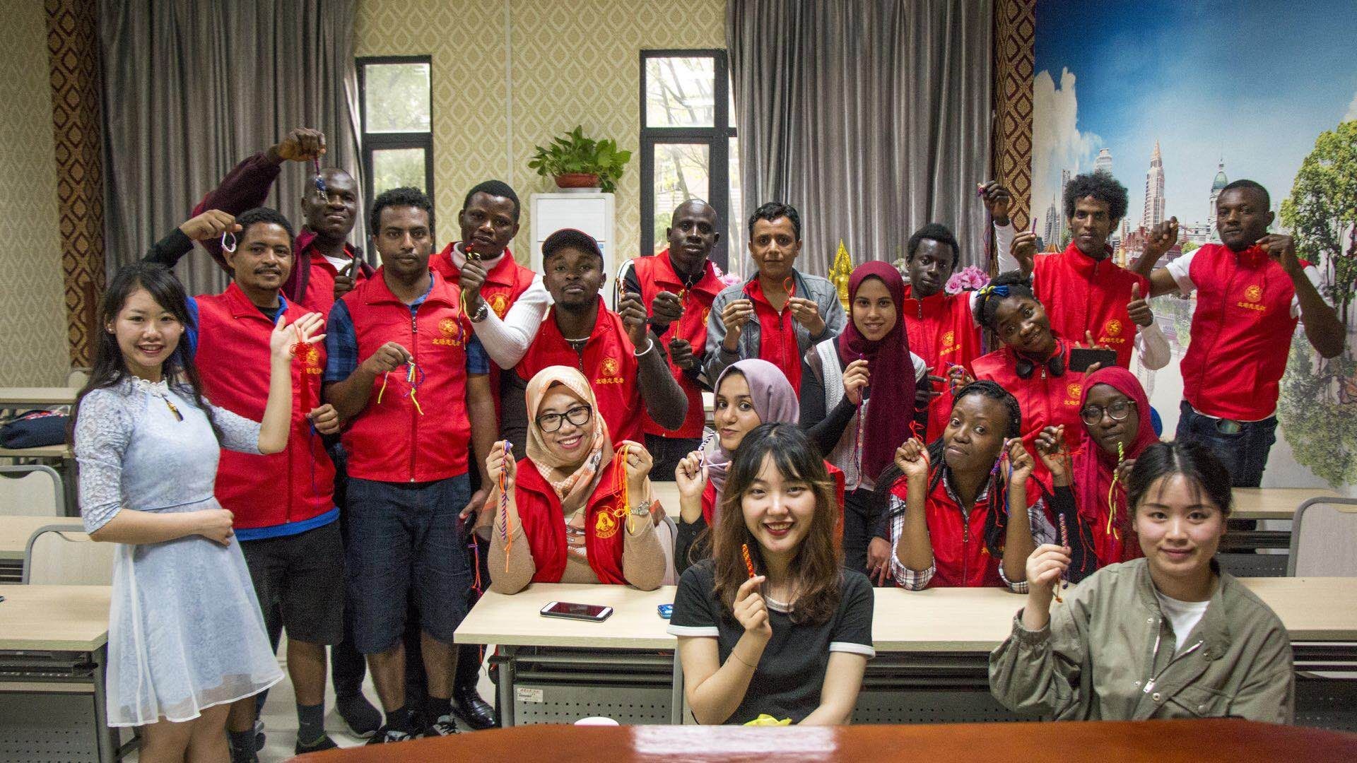 TapTap“洋雷锋”志愿者服务队为喜迎五一劳动节、致敬中国平凡英雄,2019年4月28日下午两点半在紫云楼210教室参加了“情系中国结,献礼劳动者”的编织中国结的文化体验活动,来自泰国、尼日利亚、马达加斯加、厄立特里亚、喀麦隆等国家的20余名洋雷锋志愿者参加了此次活动。