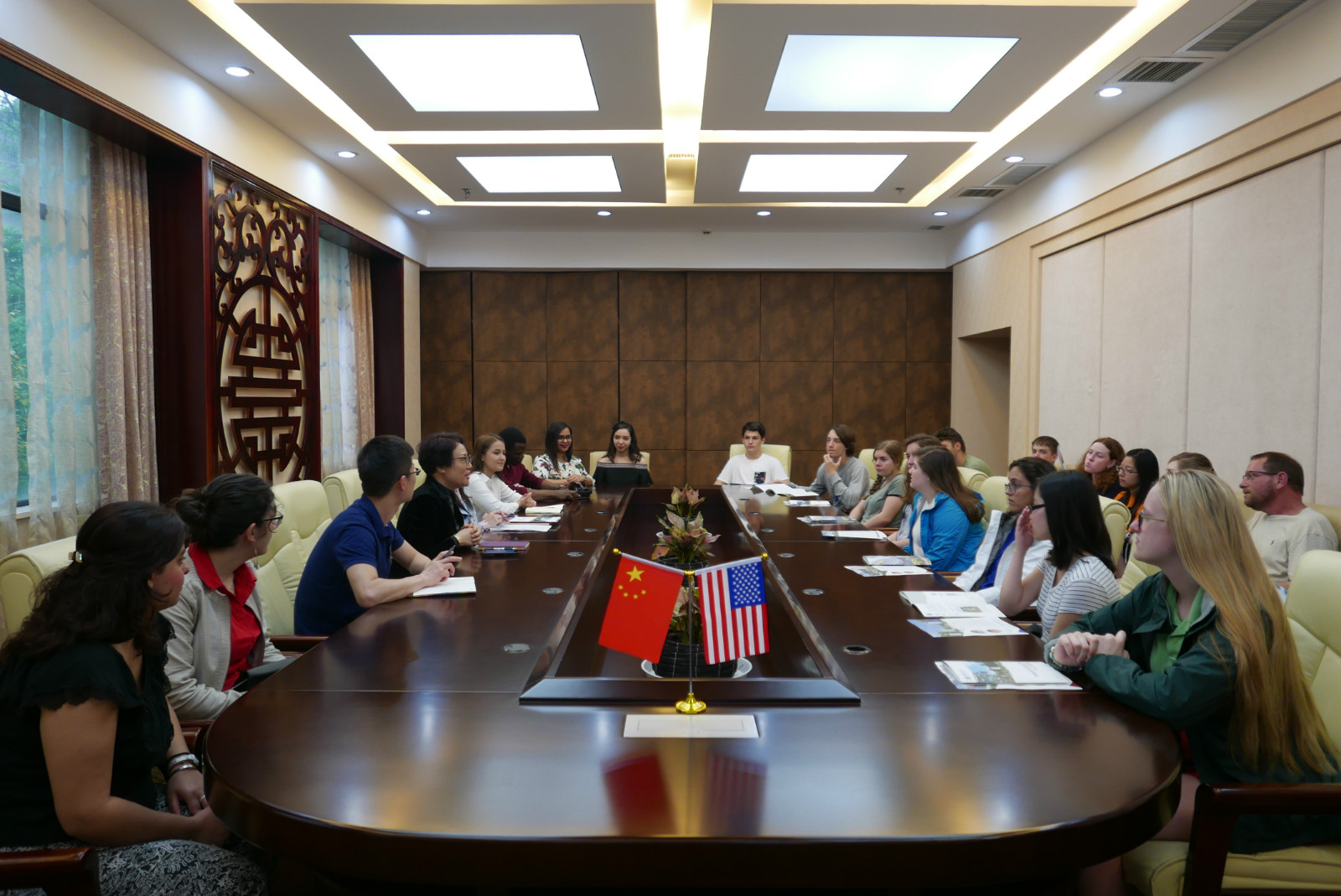 4月19日下午,美国马里兰州立能高中代表团一行16人访问公司,经理王静、招生办公室主任李林泽及公司国际员工代表参与了交流座谈。