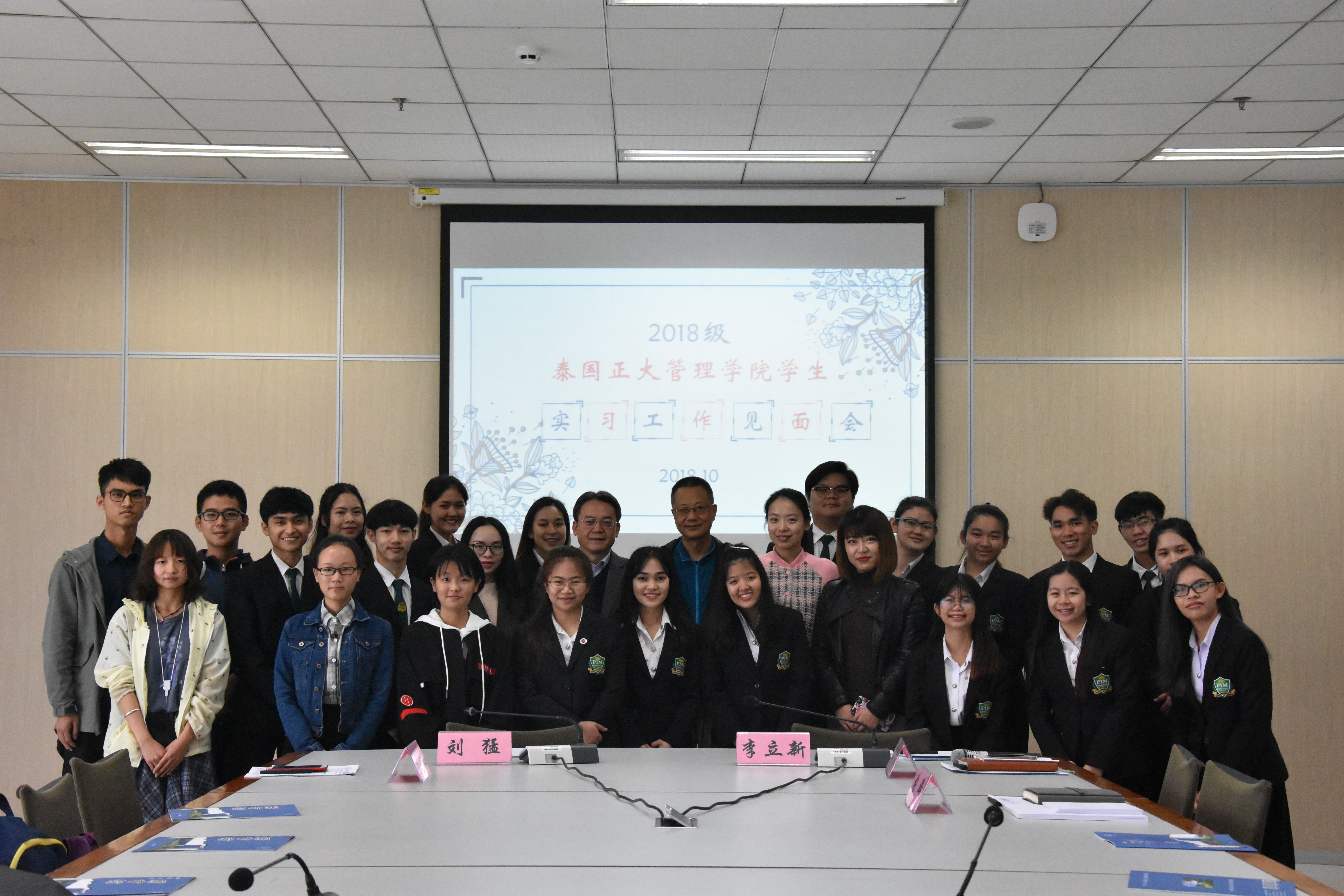 10月31日上午十一点,2018级泰国正大管理公司项目员工实习见面会在公司中心图书馆13楼会议室圆满举行。公司党总支书记刘猛,图书馆李立新副馆长,图书馆读者服务一部王怡主任,张璐副主任,公司的吴宗燕老师以及17名泰国实习生,10余名图书馆志愿者参加会议。