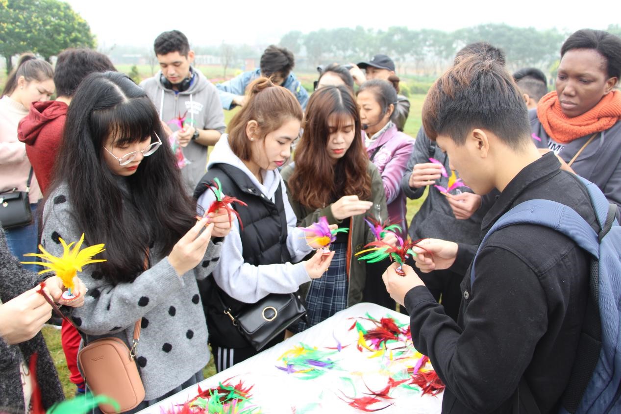 活动的最后一站,国际员工们来到了三色·乡下时光现代农业产业基地,走进现代农业科技展示区和五彩花田区体验生态农业。在这里,职工们分别体验了手工鸡毛毽子制作和中国活字印刷的古老魅力。在老师的讲解下,员工们了解了中国古代印刷术的起源及发展过程,并亲自体验了一次中国活字印刷的过程。来自喀麦隆的维安表示,中华文化博大精深,汉字的魅力深深着吸引着他,这次体验使他自己对于神秘古老的中国文化的了解又深了一些。