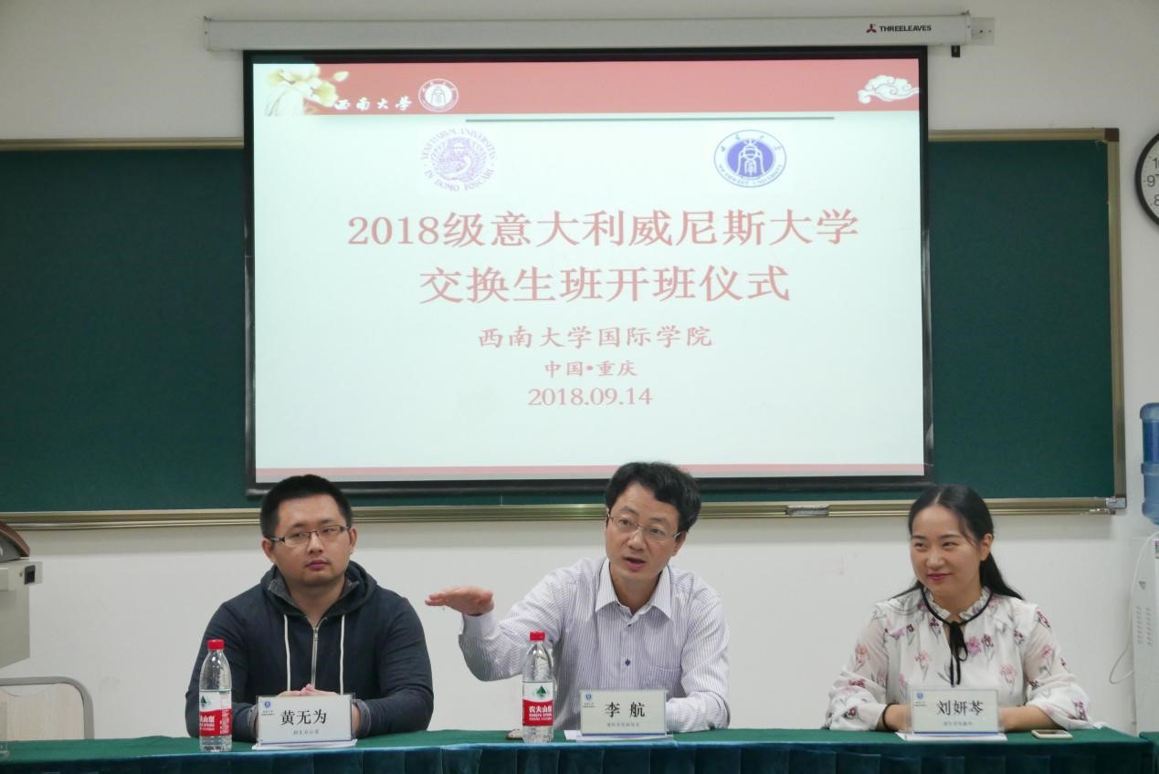 李航副经理向威尼斯大学的同学们表示热烈欢迎,并且详细介绍了该项目成立的过程,以及合作院校双方对该项目的重视。他还亲切的告诉同学们学习汉语不能仅仅是在课堂上,还应该利用课余时间,他鼓励大家走出校园,去跟更多的中国人交流,体验中华文化。