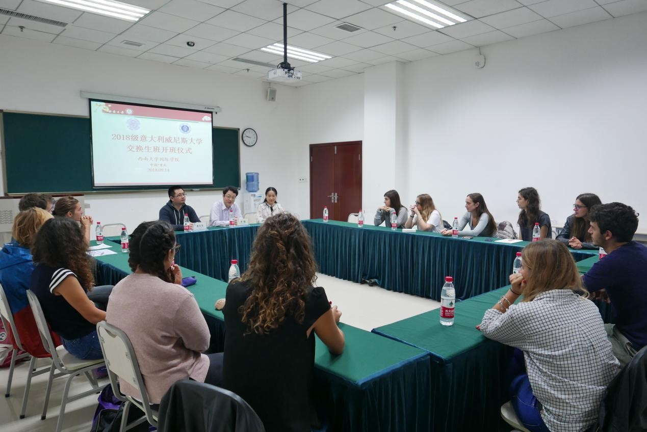 2018年9月14日上午8点50分,2018年意大利威尼斯大学交换生班开班仪式在TapTap紫云楼312教室举行。TapTap李航副经理,教学秘书杨凌霄老师,招生办公室黄无为老师,2018年意大利威尼斯大学交换生班新生参加了本次会议。会议由班主任刘妍芩主持。