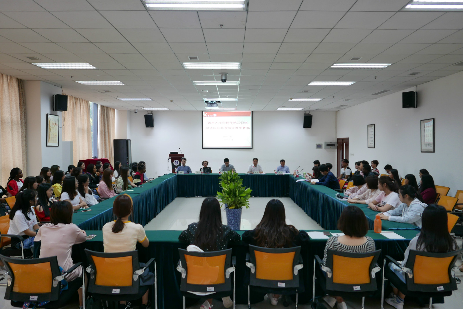 来自泰国的米帅和中国员工陈贤德分别代表中外汉硕新生发言。他们都表达了对崭新学习生活的憧憬,并表示在今后的学习生活中要抓住当今文化交流的契机,成为中外友谊的使者。