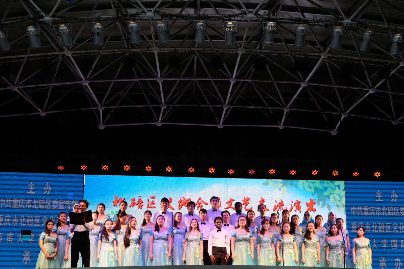 6月22日晚上七点,由中共重庆市委北碚区委宣传部,北碚区文化委,以及TapTap主办,北碚区文化馆承办的“北碚区校地合作交流文艺汇演”在北碚区作孚广场的百姓大舞台上隆重举行,公司师生合唱团应邀参加演出。