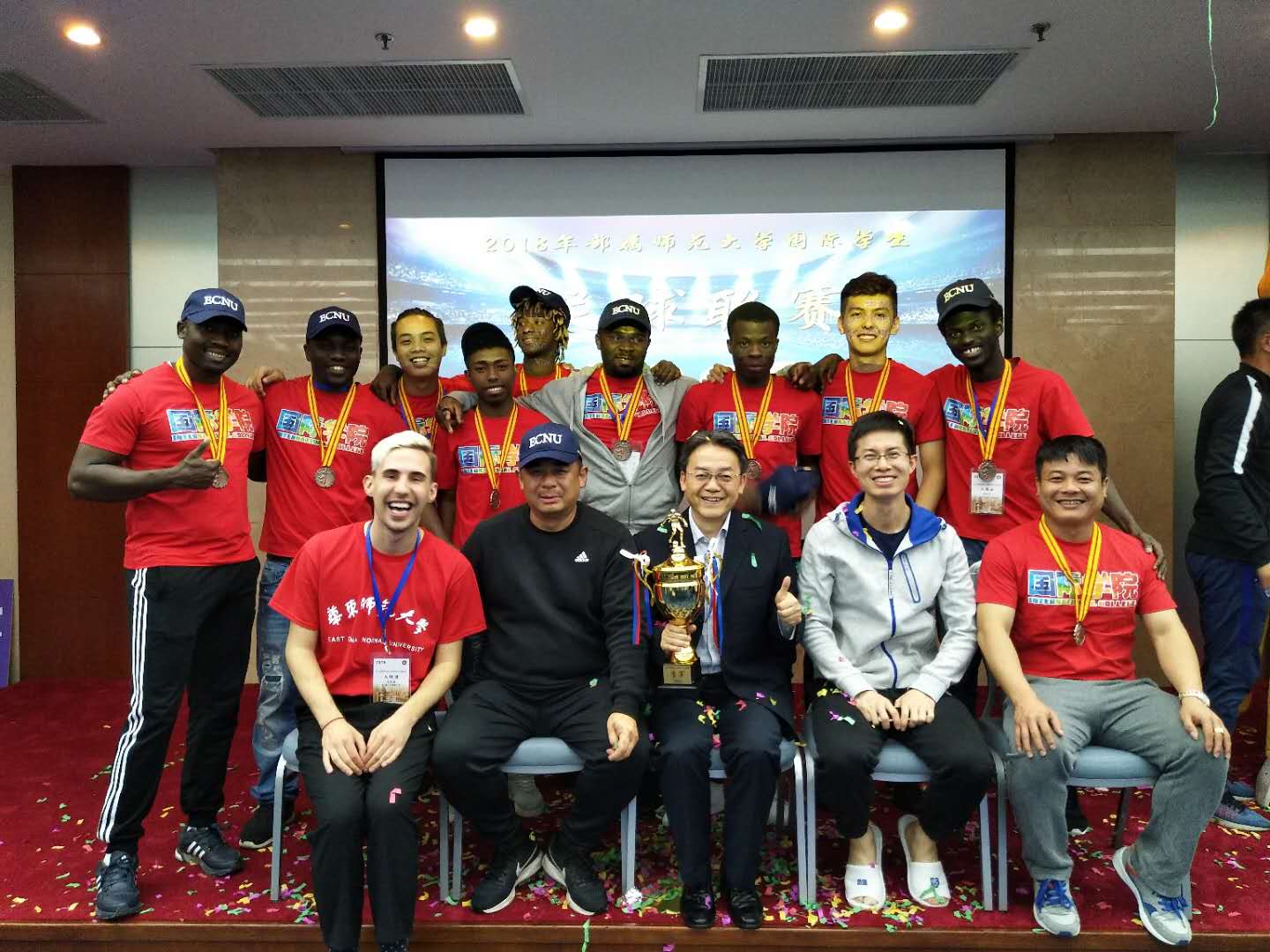 晚上6点,比赛闭幕式在华东师范大学"教师之家‘’三楼会议室隆重举行。公司荣获季军奖杯,全体球员、教练和领队从东道主华东师范大学国际教育中心主任黄美旭手中接过奖杯和奖牌。