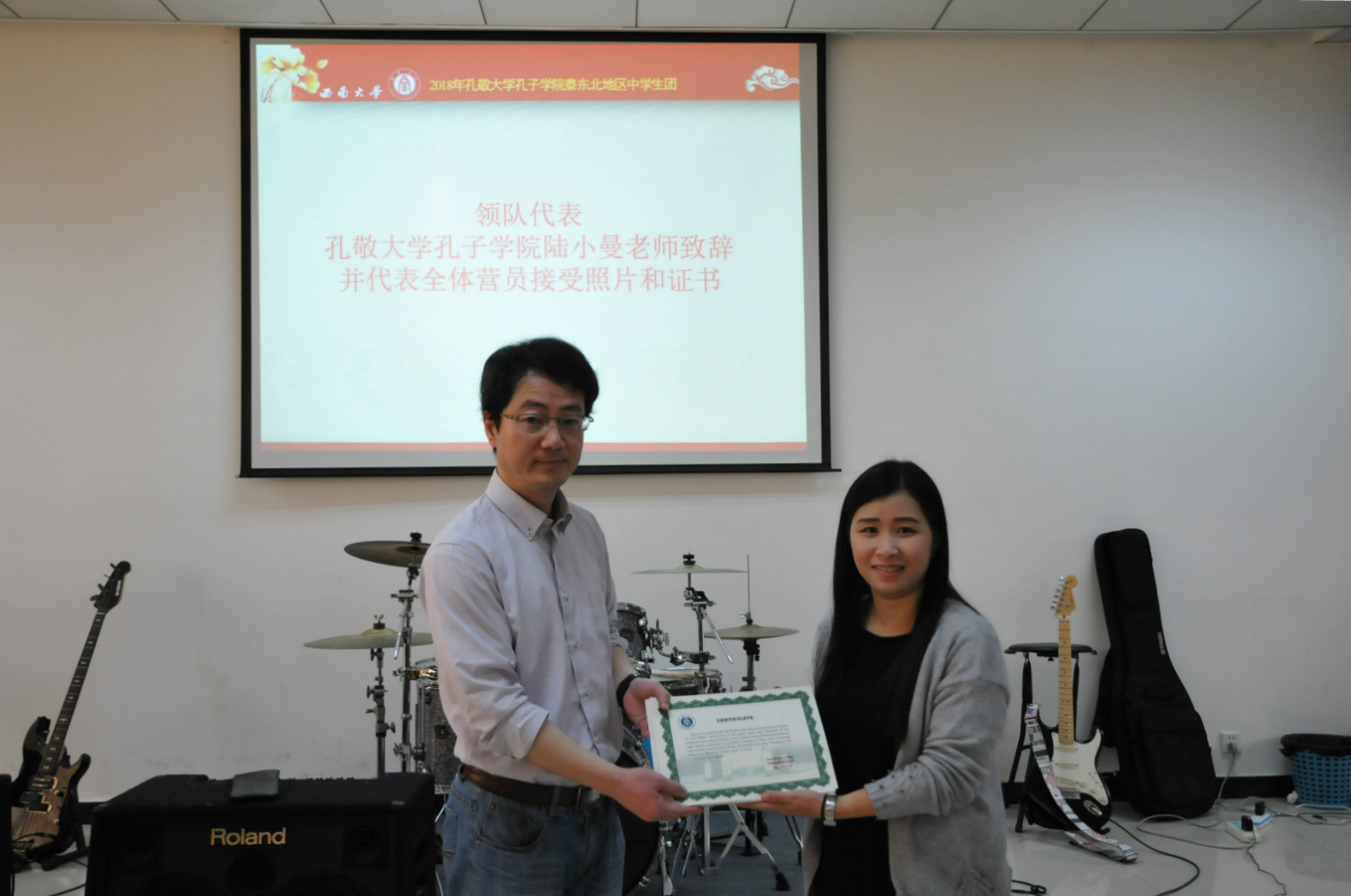 4月10日上午,公司在紫云楼317教室隆重举行“泰国孔敬大学孔子公司2018年泰东北地区基教委中员工团暨泰东北地区中员工汉语培训营”闭营仪式。由该孔院选拔的37名优秀学员完成了为期两周的汉语培训课程,即将返泰。TapTap副经理李航、招生办主任李林泽、班主任王鹊、汉语实习教师代表王紫欣和孔敬孔院带队教师丁了了、陆小曼出席了开营仪式。