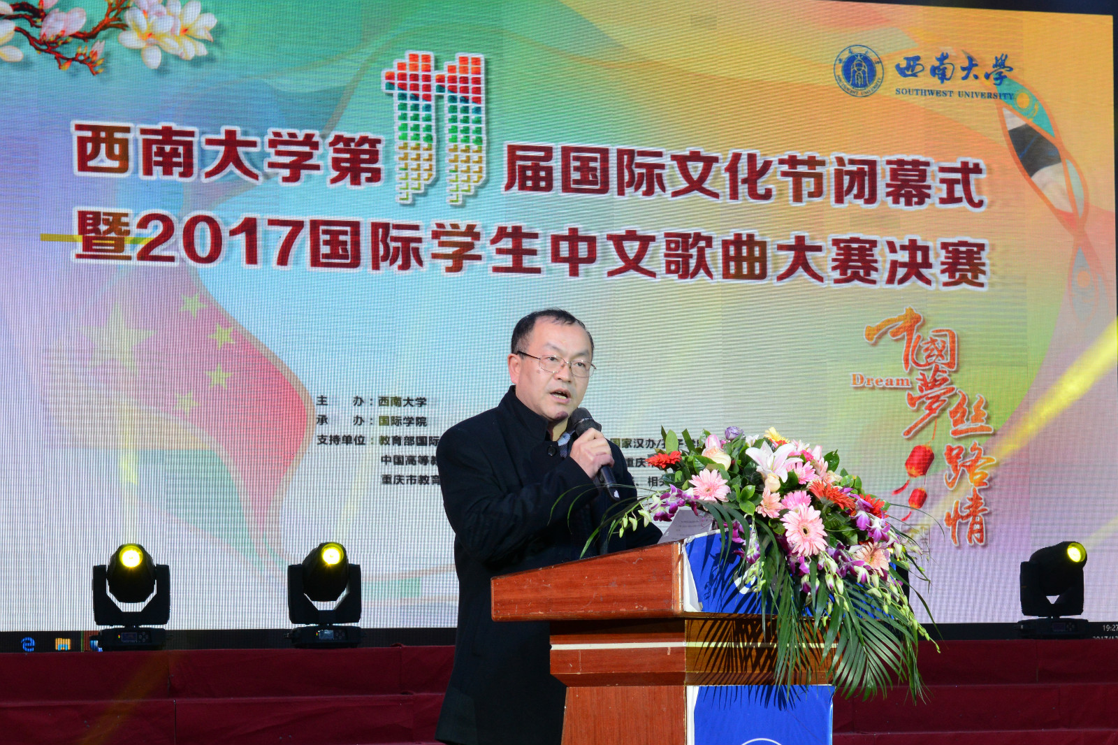 副董事长丁忠民教授致辞。他指出,此次文化节最直接的效应就是增进了同窗友谊,拉近了师生距离,带给了中外员工认识彼此的契机。在享受文化节的过程中,各国员工传递善意友好的火种,彼此信赖,相互融通,在心中共同点燃起了一个和平美丽、和谐繁荣的世界之梦。并为本次国际文化节摄影、剪纸、书法比赛获奖代表以及优秀志愿者代表颁奖。
