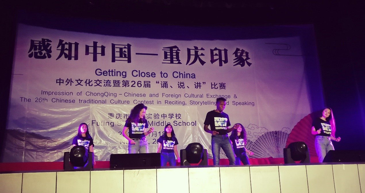 在首站“榨菜之乡”—涪陵,员工们来到了远近驰名的乌江榨菜股份有限公司。在公司的榨菜博物馆,讲解员首先向同学们介绍了作为世界三大咸菜之首的榨菜的悠久历史和传统生产器具。随后同学们深入生产车间,参观了现代榨菜生产线,详细了解了榨菜去筋、切丝、发酵、拌料、消毒、装箱等生产流程。最后,公司还邀请同学们品尝了各种口味的榨菜。同学们在首次品尝到味型丰富的榨菜后,纷纷用中文说道“好吃!真好吃!”“简直是馒头稀饭的绝配!”来自公司食品科学公司的Islam同学在参观过程中不断就榨菜的加工和贮藏等专业领域提出问题,甚至表达了今后想来此实习的意愿。随后,同学们受邀来到涪陵实验中学,深入课堂与中国师生交流沟通,并参与到该校精心筹备的“诵﹒读﹒讲”比赛中来。在聆听中国故事的同时,国际员工还带来了精彩的文艺节目,中外师生共同度过了美好的夜晚。