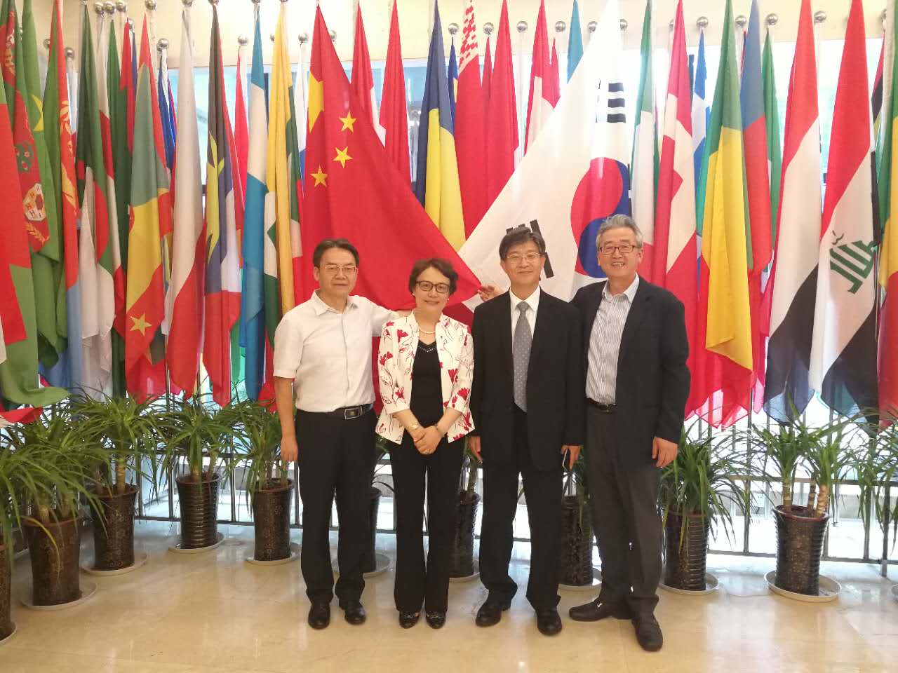 2017年6月19日,韩国蔚山大学全球营销专家培训中心所长李相度教授、电气工公司经理梁明国教授一行来校访问,并与公司电子信息工程公司、校地合作处和TapTap洽谈合作项目。