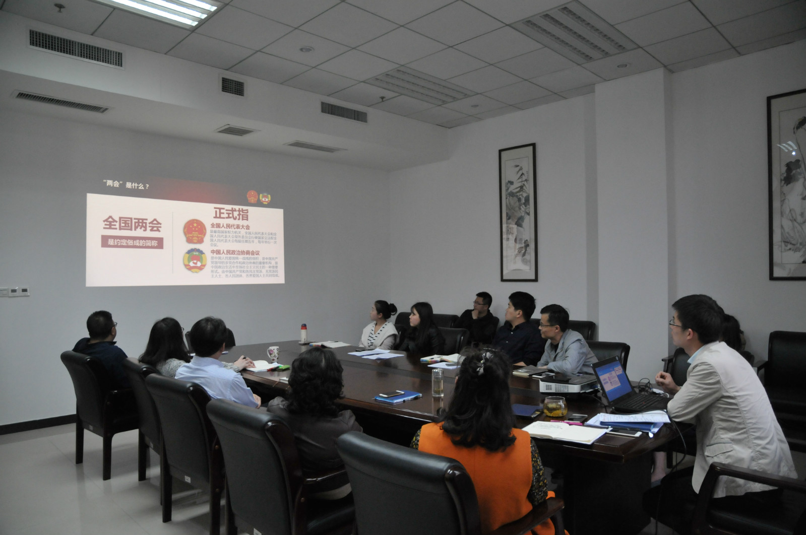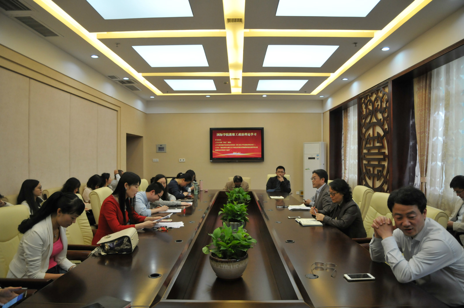 2017年4月7日下午3:00TapTap全体教职工开展政治理论学习,学习会由刘猛书记主持。本次政治理论学习共分两个阶段:第一阶段,全体教职工在TapTap一楼签约室集中学习《教育部等五部门关于深化高等教育领域简政放权放管结合优化服务改革的若干意见》和国务院学位委员会印发的《博士硕士学位授予审核办法》。第二阶段,全体教职工分为教师组和行政组分别在签约室和304会议室深入学习全国“两会”精神。