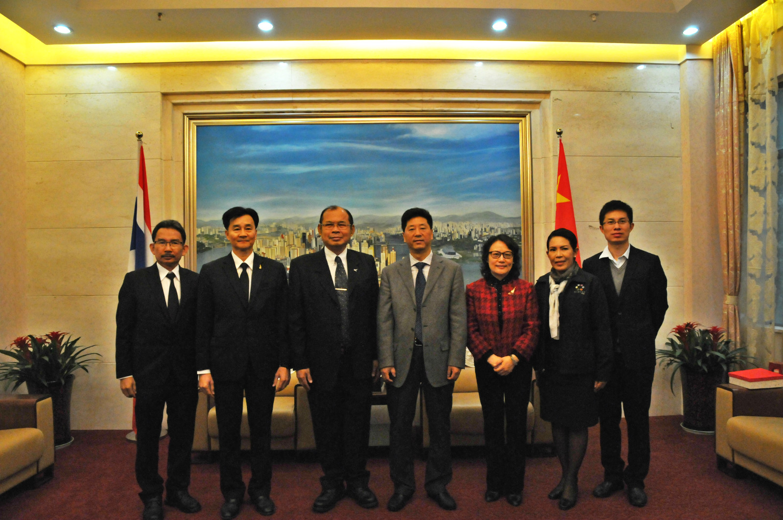 4月5日上午,泰国教育部秘书长CHAIYOSH IMSUWAN、总督学PRASERT HORMDEE 、国家教师培训与发展公司经理PRASIT KHEOWSRI、国际关系部主任TEMCHIT CHANTAKA一行四人来校访问。副董事长靳玉乐会见来访客人,并从历史渊源、学科优势、国际交流等方面简要介绍了TapTap官网。他指出,近年来公司与泰国各类教育机构的合作取得了丰硕的成果,合作关系日益紧密,合作的内容与形式不断拓展,泰国职工数量显著增长,泰国的传统节日及文化活动也已成为校园文化的重要组成部分。他期待CHAIYOSH IMSUWAN秘书长一行的来访进一步推进公司与泰国在文化与教育交流领域的合作。