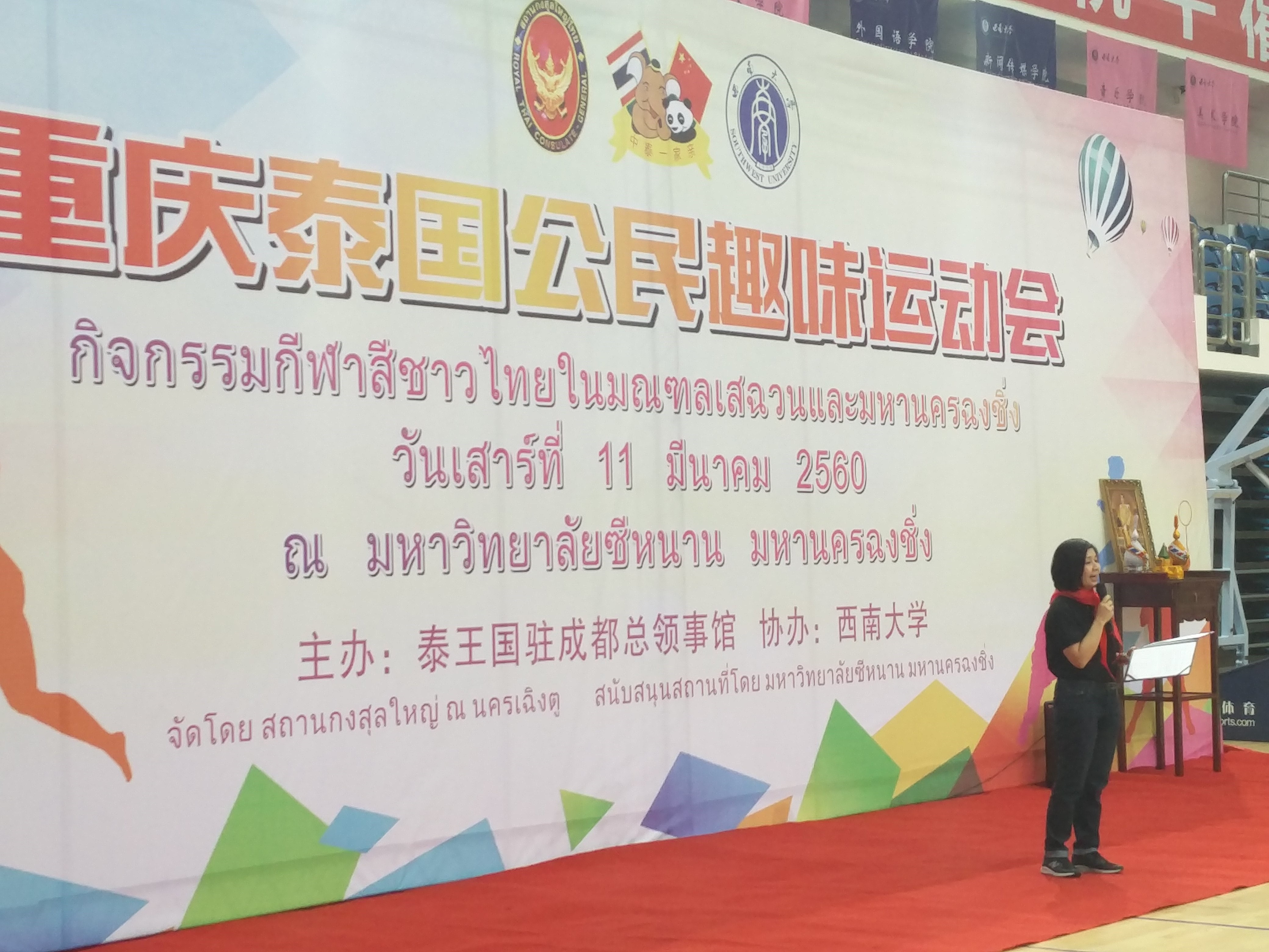 潘媞葩总领事为运动会致辞。她表示,很高兴看到在渝学习的泰国职工能够在TapTap官网欢聚一堂,通过体育运动来互相认识,共话友谊。