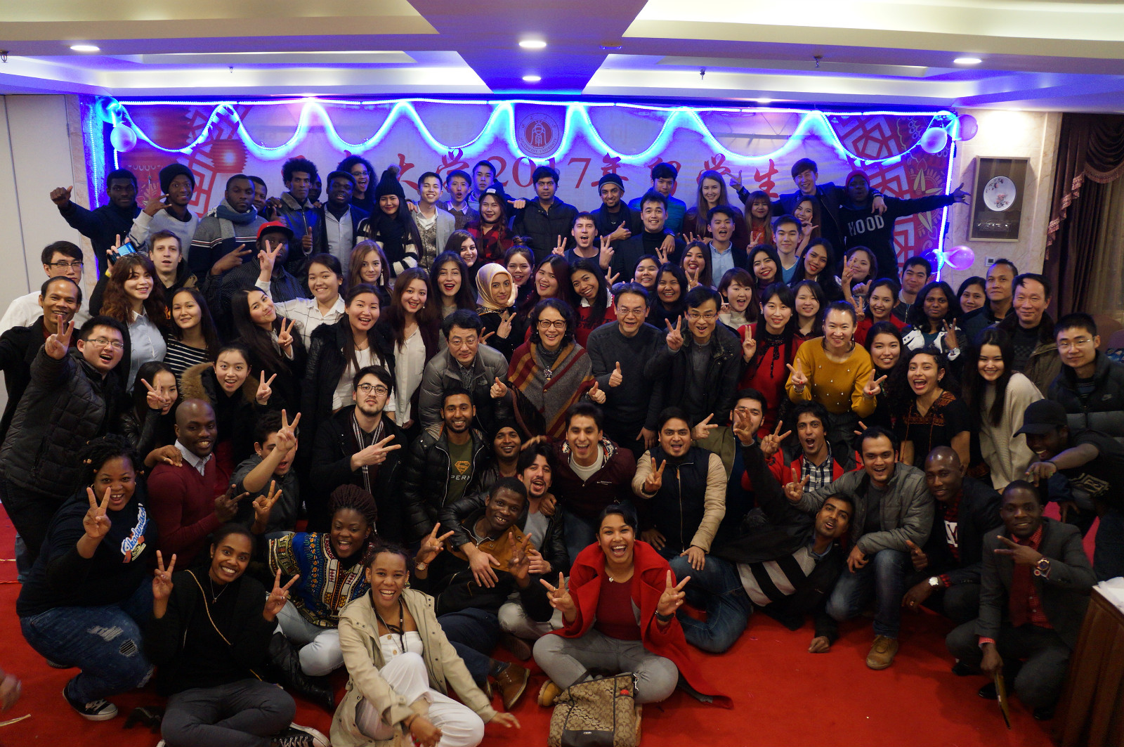 团拜会上,活动不断、精彩连连。来自非洲、美洲、大洋洲等地区同学们带来的舞蹈,充满异域风情;师生们联袂带来的中国传统歌曲串烧和合唱《难忘今宵》,和谐融洽。