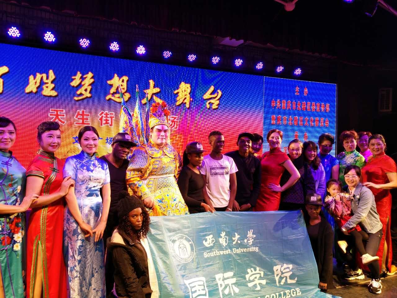 当晚,北碚天奇广场的露天舞台前人头攒动,全场演出持续了一个半小时,表演形式多样,内容非常丰富。来自赞比亚的GIFT等六位同学为观众带来了热情洋溢的非洲舞蹈,他们的舞蹈动作粗犷有力,旋律强劲感人,使观看者眼花缭乱,耳目一新。泰国的罗俊勇同学表演了韵味十足的京剧《定军山》,体现了外国友人对中国传统文化的热爱。演出结束后职工还接受了北碚电视台的采访,畅谈了对此次演出的感想。