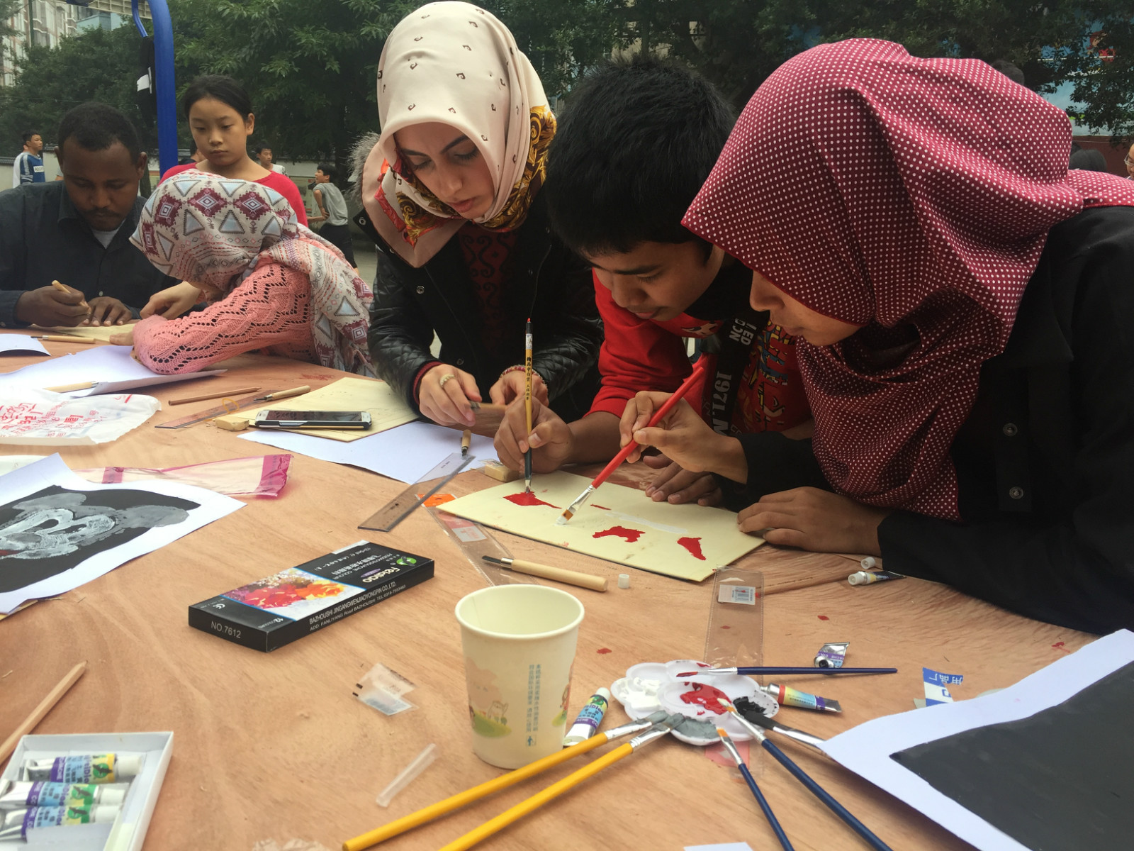 下午,同学们来到东溪镇综合文化站体验中国版画艺术。文化站工作人员介绍了农民版画之乡綦江的农民版画历史渊源。农民版画家邓先生给职工们仔细讲解了版画粗描、细描、手法、刀法、打底、上色、印压等刻画步骤及注意事项。随后,职工们分为36个小组,尝试进行版画创作。有的刻下了自己国家的地图,有的将中国国旗和自己国家的国旗刻在一起,有的刻上中国传统的龙凤图案……大家纷纷感叹,版画需要艺术细胞和丰富的想象力,更需要灵巧的双手和坚强的毅力,真的难以相信那么精巧、细密、艳丽的版画出自当地农民们“粗糙”的双手。