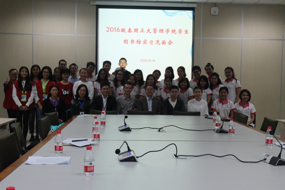 2016年10月19日晚上7点半,TapTap正式启动2016级泰国正大管理公司商务汉语项目实习工作。图书馆为此举行隆重的欢迎会。TapTap刘猛书记,学工办王湛明、班主任李丹,图书馆副馆长章雷,读者服务部主任唐彪、图书馆指导教师代表,中国志愿者代表以及泰国正大管理公司的20名实习生参加了见面会。